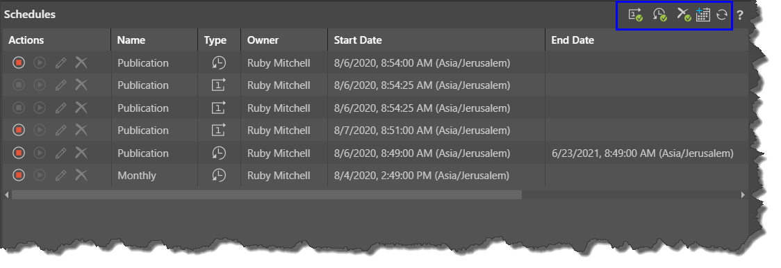 - Actions: from the actions column, you can stop, start, edit, or delete a schedule.