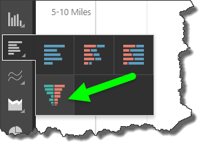 The tornado chart can be selected from the Bar chart sub-menu in the Visualization menu or from the Change Visualization drop-down in Report ribbon.