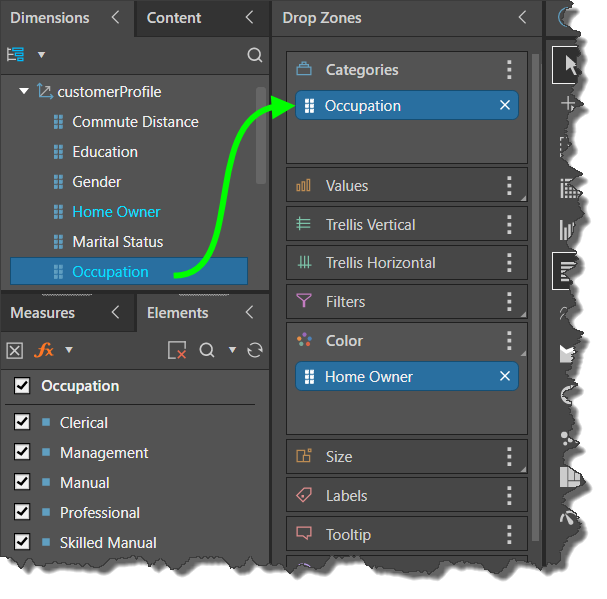 Add a larger hierarchy to the Categories drop zone. Here, the Occupation hierarchy was used.