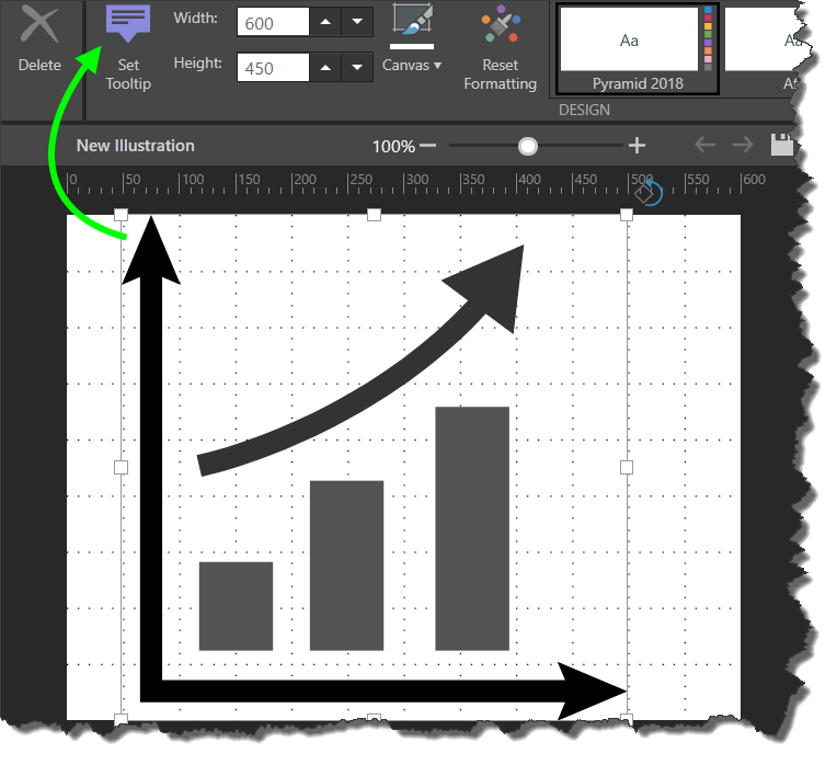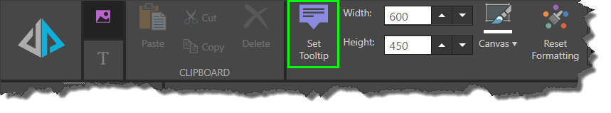 From Illustrate, open the tooltip designer by clicking Set Tooltip (green highlight below) from the Illustration ribbon. Be sure to have the relevant asset selected when you open the designer.