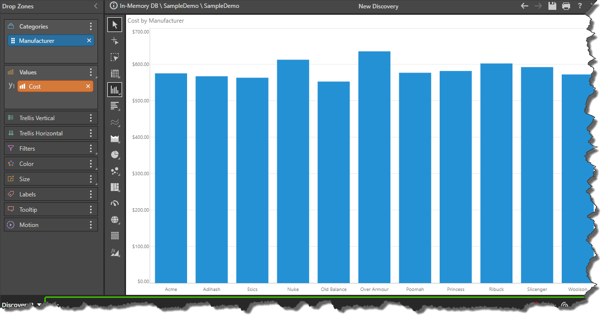 The Categories drop zone appears when working with column, bar, line, and area charts. The Categories zone drives the representation of the data categories (elements) in the visualization.