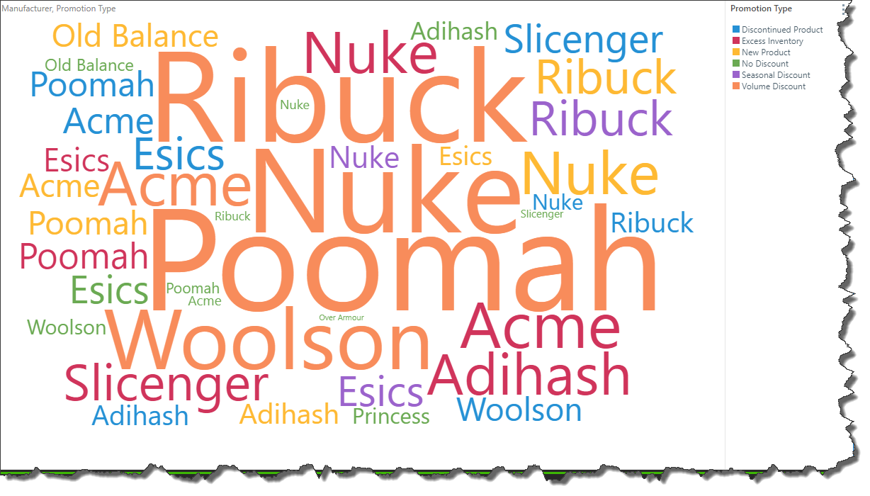 By default, cloud charts display text in both vertical and horizontal orientation. The text orientation in cloud charts can be changed arrange the text in three different ways: perpendicular, random, or horizontal.