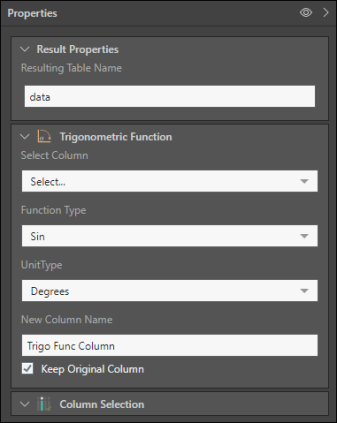 To generate a new column based on a trigonometric function, select the relevant column, and then select the function type.