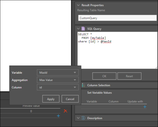 Current Value: the row number from which to start updating rows in the table. If the ETL has not yet been run with the variable, this value should be 0. Once the ETL has been run, this value will automatically be updated to reflect the value (number of rows) from the last execution.
