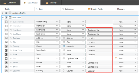 At this stage of data modeling, users can define additional grouping criteria by placing columns into sub-folders. This can make it easier to navigate large dimensions later on in Discover.