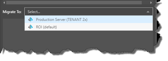 Use the drop-down under 'Migrate To' to select the target Pyramid instance that will be used for the migration. The list of Pyramid instances need to be preconfigured as a migration destination in the Admin console and may be secured by tenant.