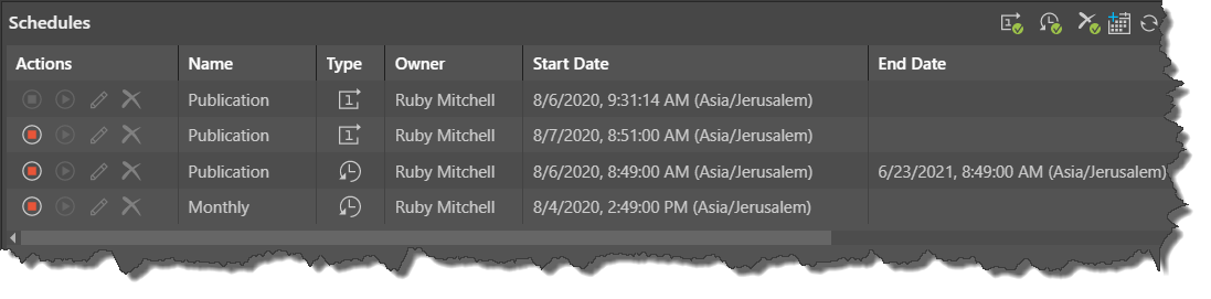 - Actions: from the actions column, you can stop, start, edit, or delete a schedule.