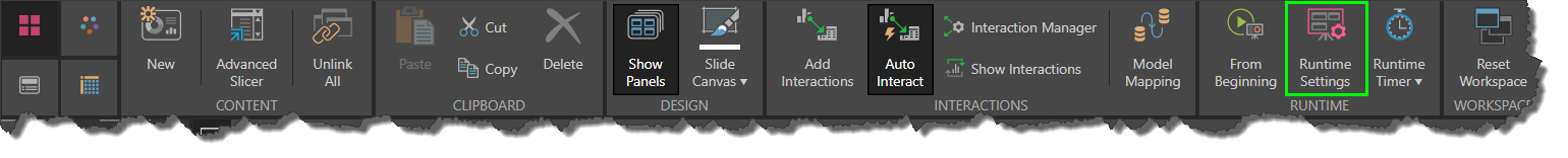 Open the Runtime Settings dialog from the Presentation ribbon.