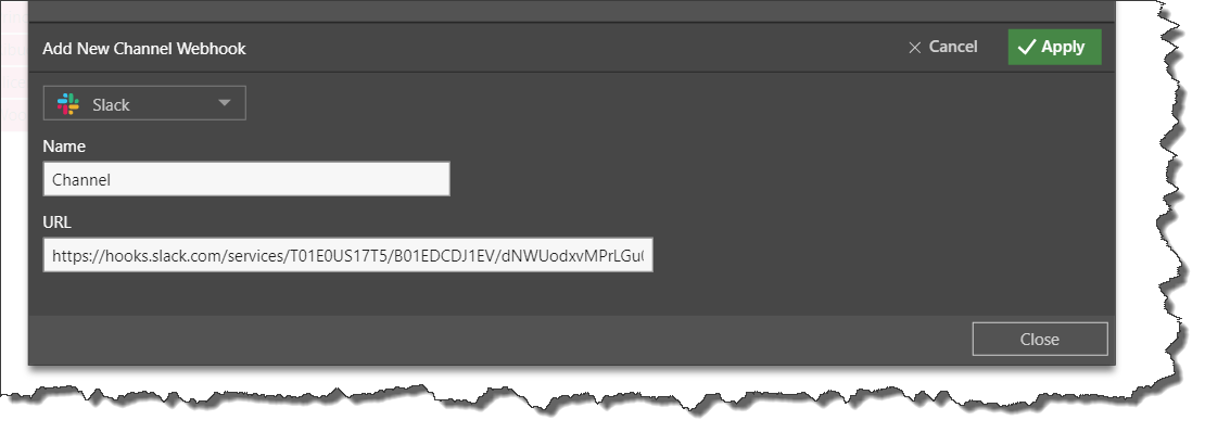 Webhook distribution to a channel in Slack requires you to add the Incoming Webhooks app; this connector will generate a URL which you'll need to provide to Pyramid. Follow the steps below to get the Webhook channel URL.