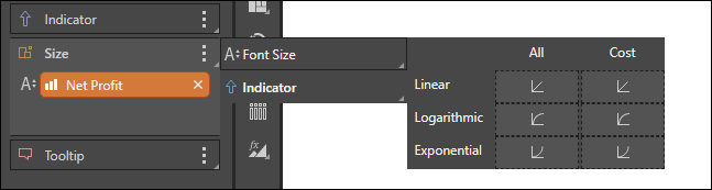 When working with grids, the size logic can be applied to either the font, or indicators. By default, it will drive the font size.