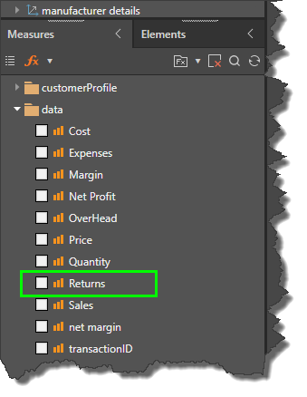 In this example, the caption for the measure 'returns' is changed to 'Returns'. Start right clicking on the measure for which you want to create an overlay; select Properties.