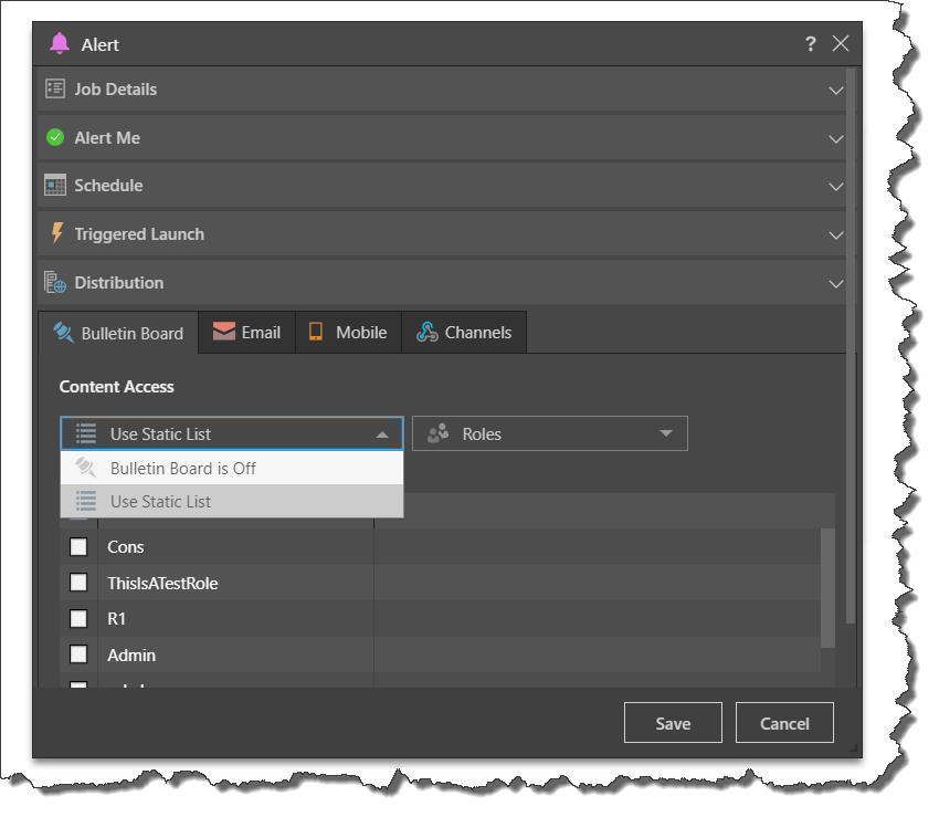 • Bulletin Board: distribute alerts to a static list of roles or users via the Bulletin Board.