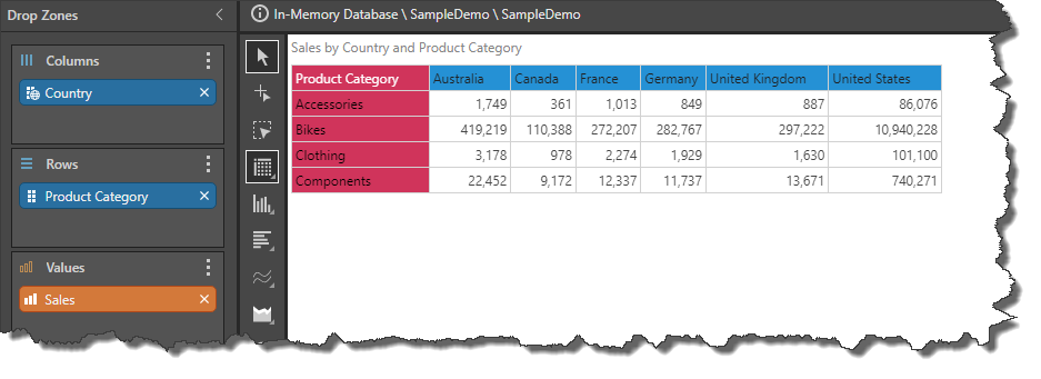 The elements were added to the query, in the green column labeled Product. Because the selection type was "Create Selection" if the query already contained a list of elements derived from the members search, from the same hierarchy (in this case, from the Product hierarchy), the previous elements selection will be replaced by the new one.