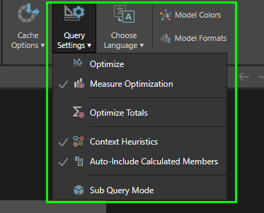 Note: Query settings are only relevant for Microsoft Multidimensional, Tabular and SAP BW models and cubes. They are NOT relevant in Pyramid models.