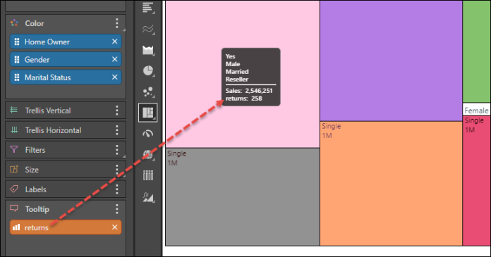 Add the Returns measure to the Tooltip zone to display the returns for each data point in the tooltip.