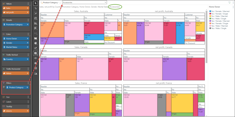 Add the Net Profit measure to Trellis Horizontal to compare sales with net profit in 2 separate charts.