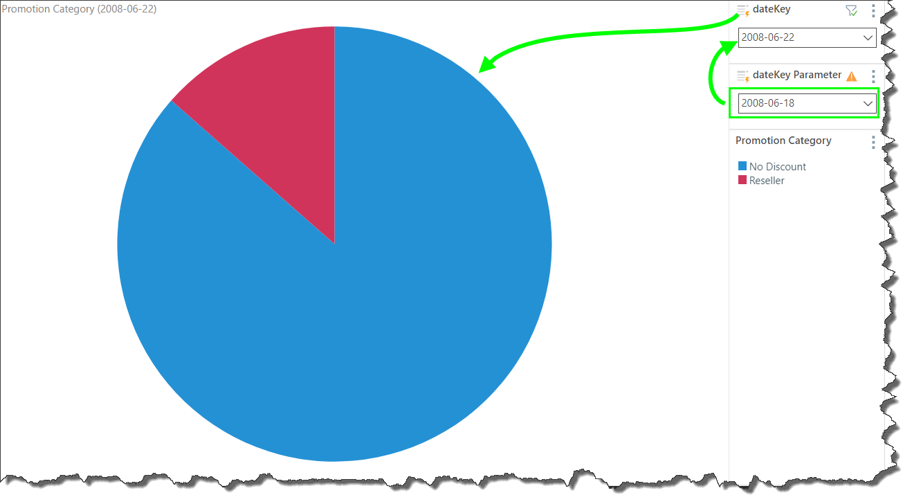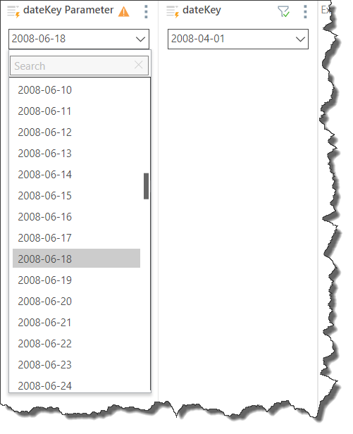 These calculations are available from the dateKey hierarchy only. When a Full Period calculation is chosen, a dateKey slicer is added to the canvas; select the required date from the slicer to display all dates.