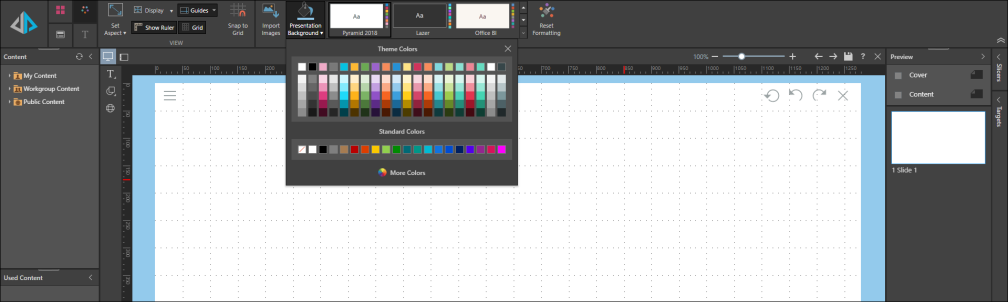 When working in a fixed presentation layout, the Grid button can be used to show or hide the grid lines on the canvas.
