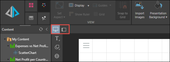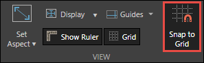 If working with a fixed layout, the Snap to Grid button can be enabled or disabled. The Snap to Grid function is used to easily place visuals along the grid lines.