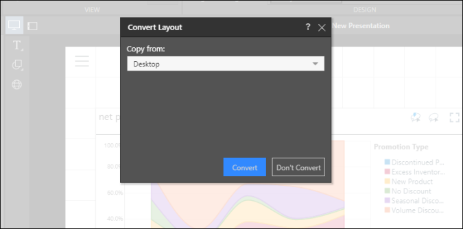 When working in the desktop layout, the canvas size can be changed from the Design ribbon. The Canvas Size drop-down is only exposed when working with a fixed layout. Users can select one of the canvas size presets, or select 'Custom' to configure a custom canvas size.