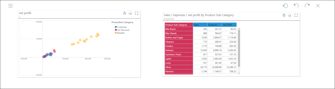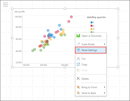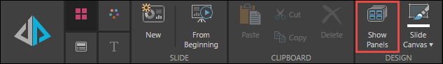 Panels can also be enabled and disabled from the Slide ribbon, and Panel Settings can be accessed by right clicking on the visual to open its context menu. For more information, see Show Panels.