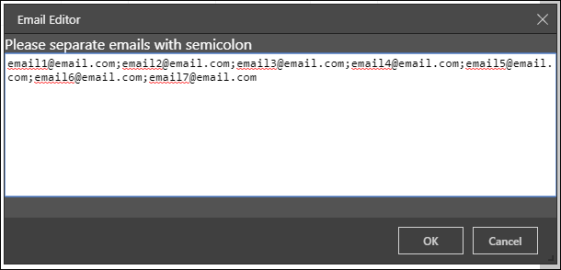 Type paste your email distribution list in the Email Editor, making sure that each email is separated with a semicolon. Click OK.