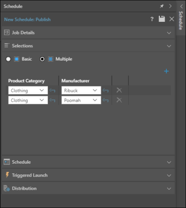 Set the scheduling preferences as required. Remember that all recipients included in the static list of emails will receive all copies of the publication that are generated according to the slicer preferences set in the Selections window. This means that if you have 2 slicers, both set to All Items, then a separate publication will be generated for each possible slicer combination; every recipient will receive every copy.