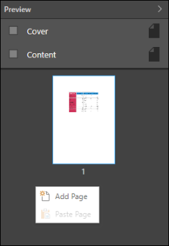 Right click on the Preview panel background to add or paste a page.