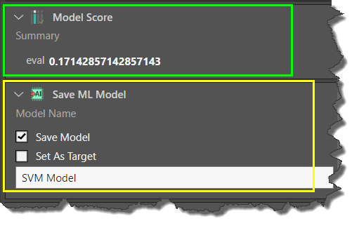 To save an ML Model, select Save Model; name the ML model in the textbox below. Save and execute the master flow.