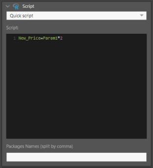 Add the node to the table you want to apply a script to, and from the Properties panel, select Regular script.