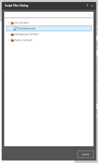 After adding the Python or R node to the relevant table, click the folder icon to open the Script Files dialog.