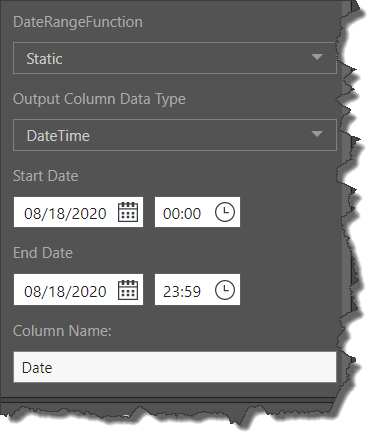Unlike the Min/ Max function, the Static function does not require a source column. Instead, it generates a static list of dates based on the start and end dates defined for the output column.