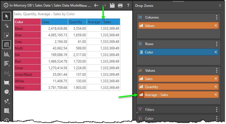Once you have that chip, you are free to move it to any other drop zone like all other metrics in your data model.,