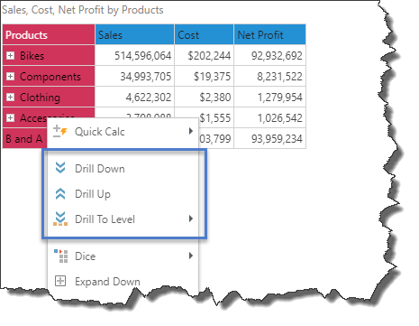 Regular hierarchies enable interactive drilling from the context menu, as well as via a single or double click if this is configured from the User Defaults panel.