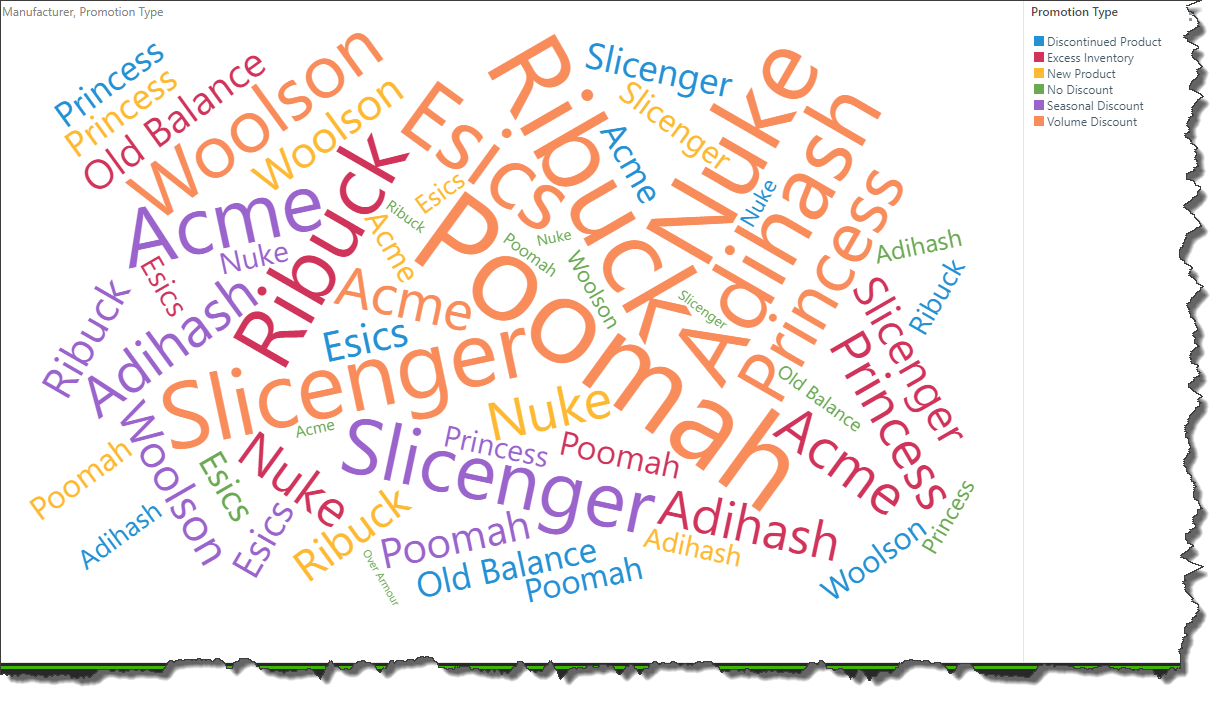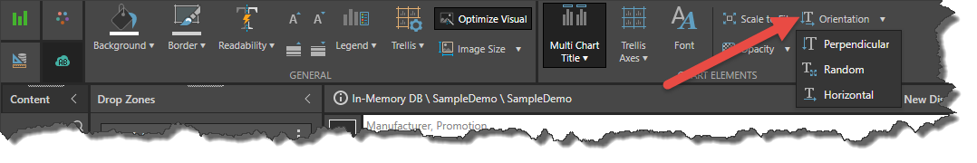 By default, cloud charts display text in both vertical and horizontal orientation. The text orientation in cloud charts can be changed arrange the text in three different ways: perpendicular, random, or horizontal.