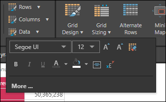 From the Grid Font dialog, users can make changes to the data cells in the grid. Users may change the font type, size, color, emphasis and alignment. Changes made here will be applied to all data cells in the grid.