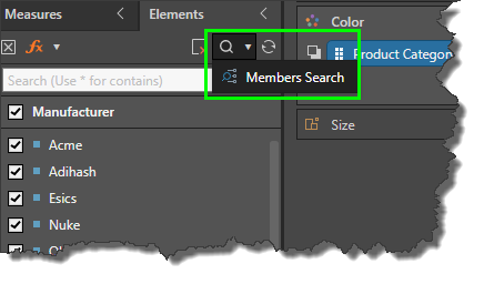 The members search functionality provides a convenient way for users to find the member elements they need, and add them to the query. This way, there's no need