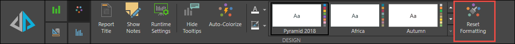 To reset the report title to its default settings, click Reset Formatting from the Design ribbon. Note that this will also reset other formatting changes.