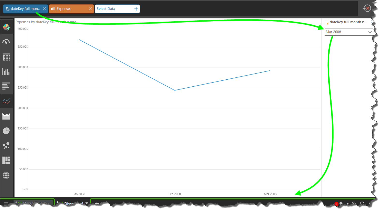 The latter option allows you to filter your visualization by the selected date-time calculation. This is useful if you want your visual to display precise information within a given time-frame. For example, the visual below displays expenses for promotions by manufacturers; adding the full month calculation as a filter enables filtering by specific month, so the user can filter out data from other months: