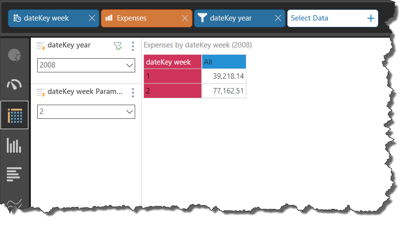 Current DateKey Week: shows the current week; available for the Week hierarchy.