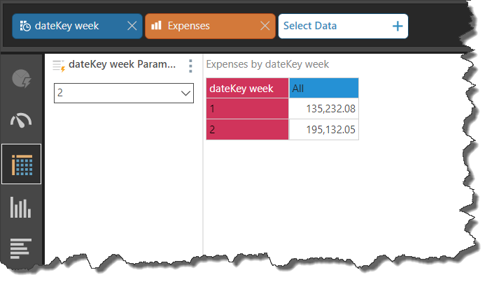 Selecting a Period to Date calculation adds a parameter slicer to the canvas. From the slicer, select the required date or time period to display data for the given period to date.
