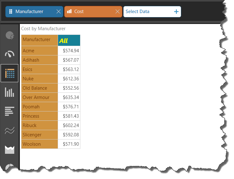 Alternatively, you make a custom, sorted, or filtered selection from a hierarchy by opening it's sub-menu. In this example, 6 items (elements) were selected from within the Manufacturer hierarchy: