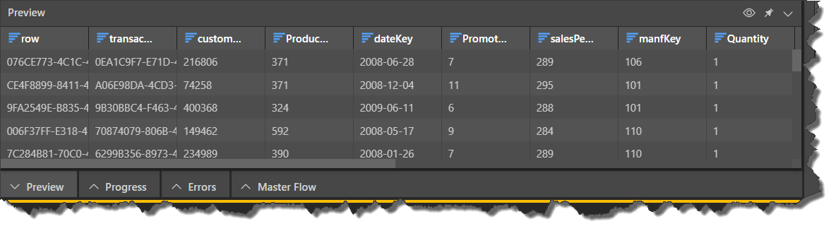 By default, the preview displays the first 50 rows in the table. The preview size can be changed from the Data Flow ribbon; click the Preview Size drop-down and select a preset.