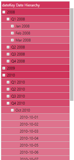 In this example, the data source contained a basic date-time column called dateKey, in the format YYYY-MM-DD: