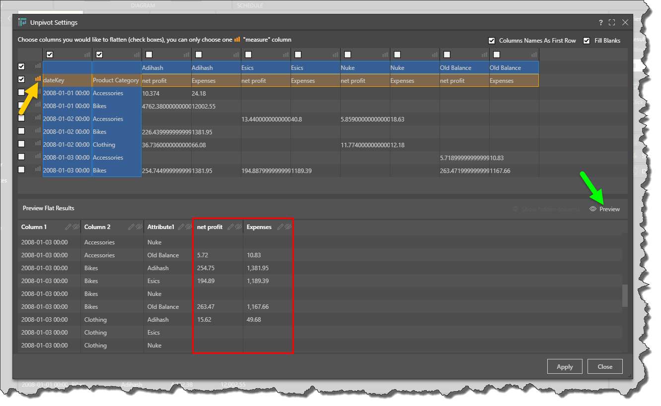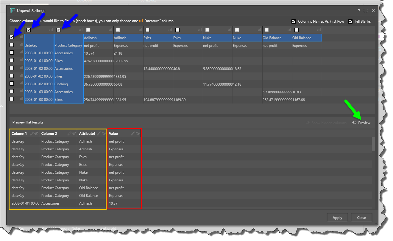 Be sure to click the 'Apply' button to confirm your unpivot settings.