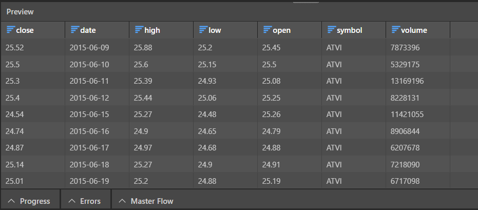 When we preview the table in Pyramid, we see that the CSV file has be converted correctly: