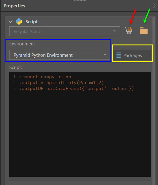 There are a few ways in which to construct your Python script: they can be downloaded from the Pyramid Marketplace, imported from the Pyramid content manager, or written or pasted directly to the Python node's Properties panel.