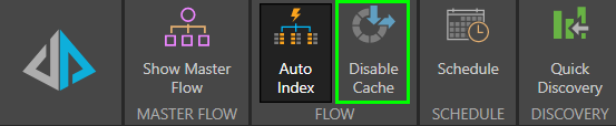 Caching is enabled by default; toggle the 'Disable Cache' button from the Configuration ribbon or the Tables ribbon to turn of all caching for the data model.