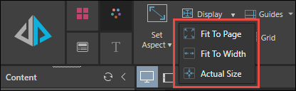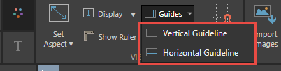 Open the Guides menu to add vertical and horizontal guidelines, to assist in presentation layout. This button is only enabled when working with a fixed layout.