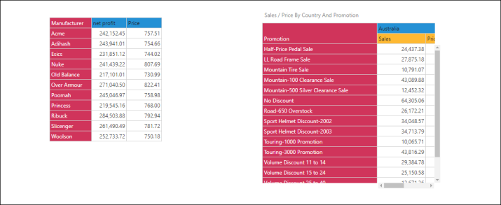 The visualization panels contain information that provides context to your reports, as well as tools that allow you to explore your data dynamically in runtime.